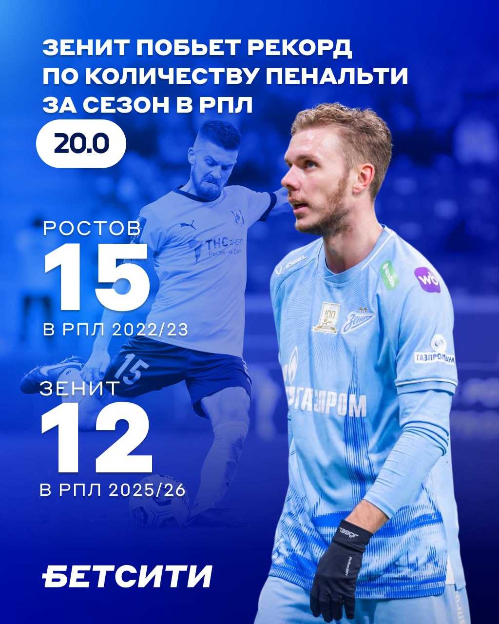 В этом команде Семака могут помочь пенальти, и, кроме того, «Зенит» имеет возможность побить рекорд «Ростова», который в сезоне 2022/23 пробивал 11-метровые удары 15 раз.