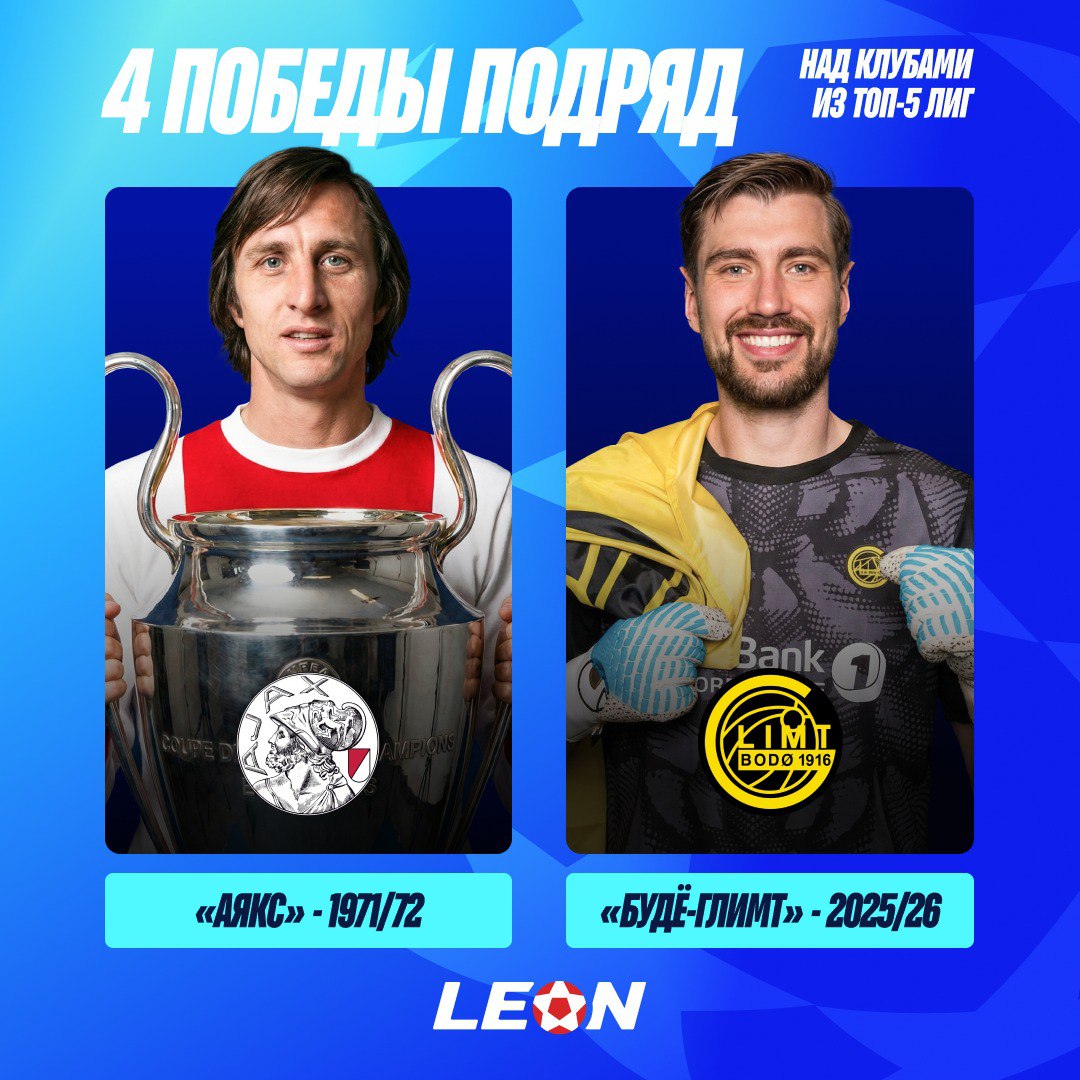 Норвежский клуб «Будё/Глимт» повторил редкое достижение команд, не представляющих топ-5 чемпионатов, одержав четыре победы подряд над клубами из этих лиг. Коэффициент на их триумф в турнире составляет 81,00 по линии БК «Леон».
