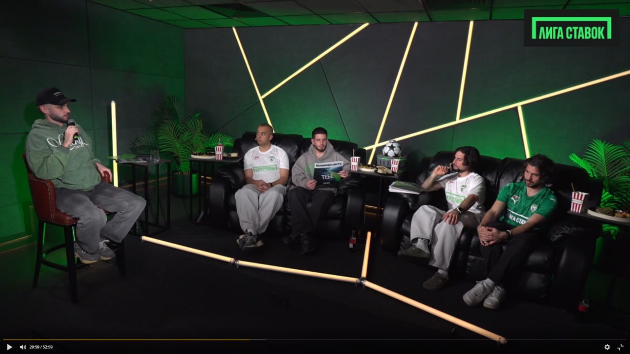 Эфир стартовал в приложении «Лиги Ставок», где амбассадор компании Евгений Евневич вел студию. В гостях у него были игроки команды — Слон, Стиль, Арчи и Кот. Они обсудили предстоящую игру между «Реалом» и «Баварией», а также провели увлекательные футбольные квизы, в которых зрители могли выиграть фрибеты.