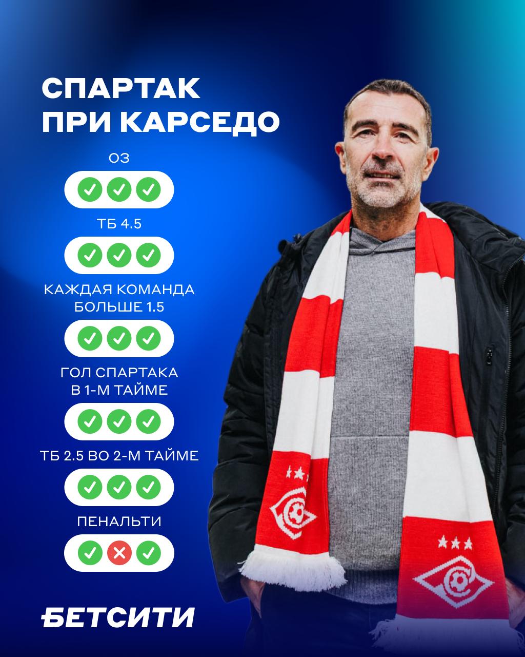 Каждый официальный матч «Спартака» под руководством Карседо превращается в настоящее голевое представление. Красно-белые не уделяют внимания обороне, но при этом проявляют высокую эффективность в атаке.